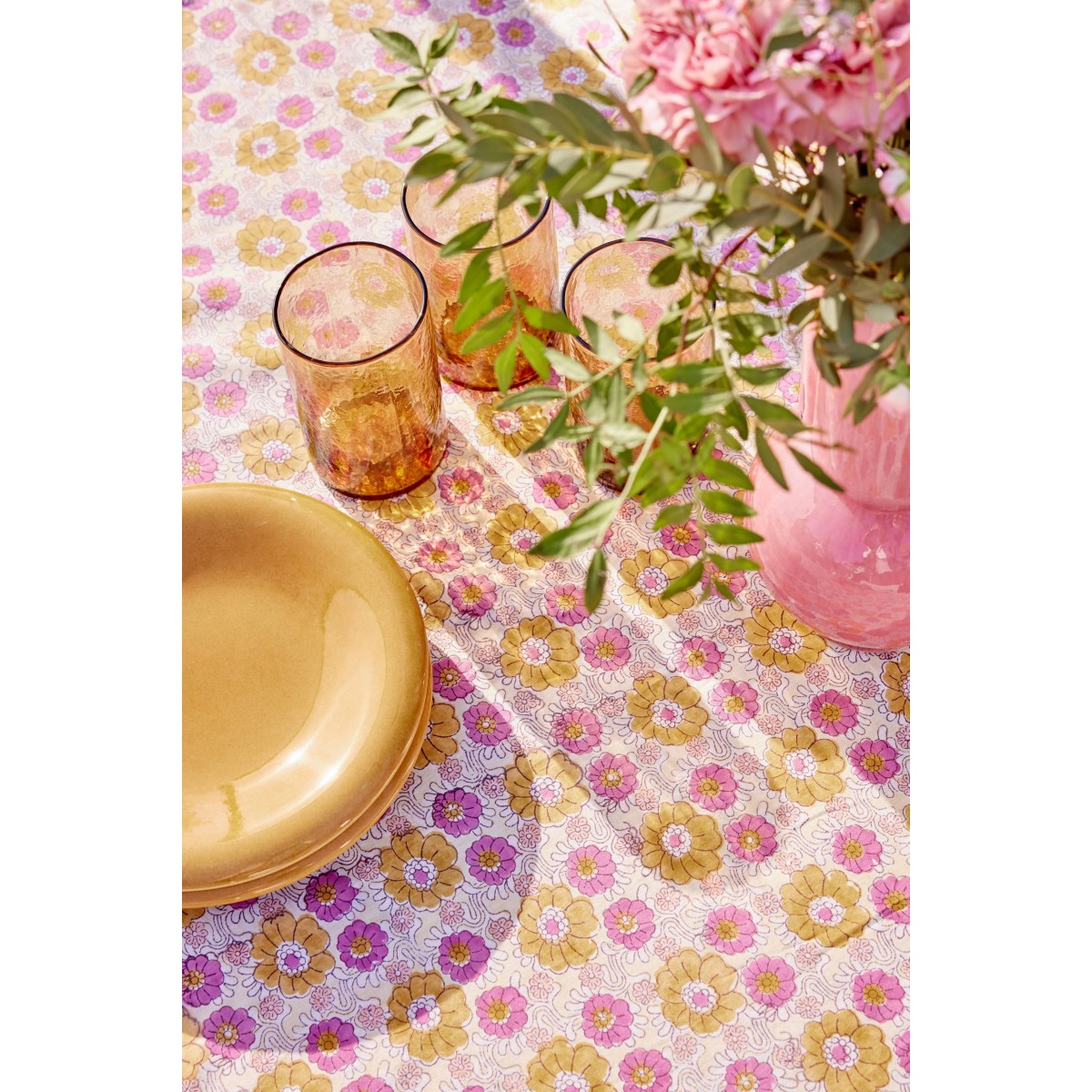 Place on a large table for family meals or lunches with friends, in the garden or indoors. It lends itself to all occasions and can be mixed and matched with our printed napkins, sea rush placemats and colorful candleholders. A cheerful, bohemian spirit to match your mood.