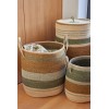 Hand-woven from sea rush and decorated with colorful stripes, it combines practicality with a decorative spirit.
