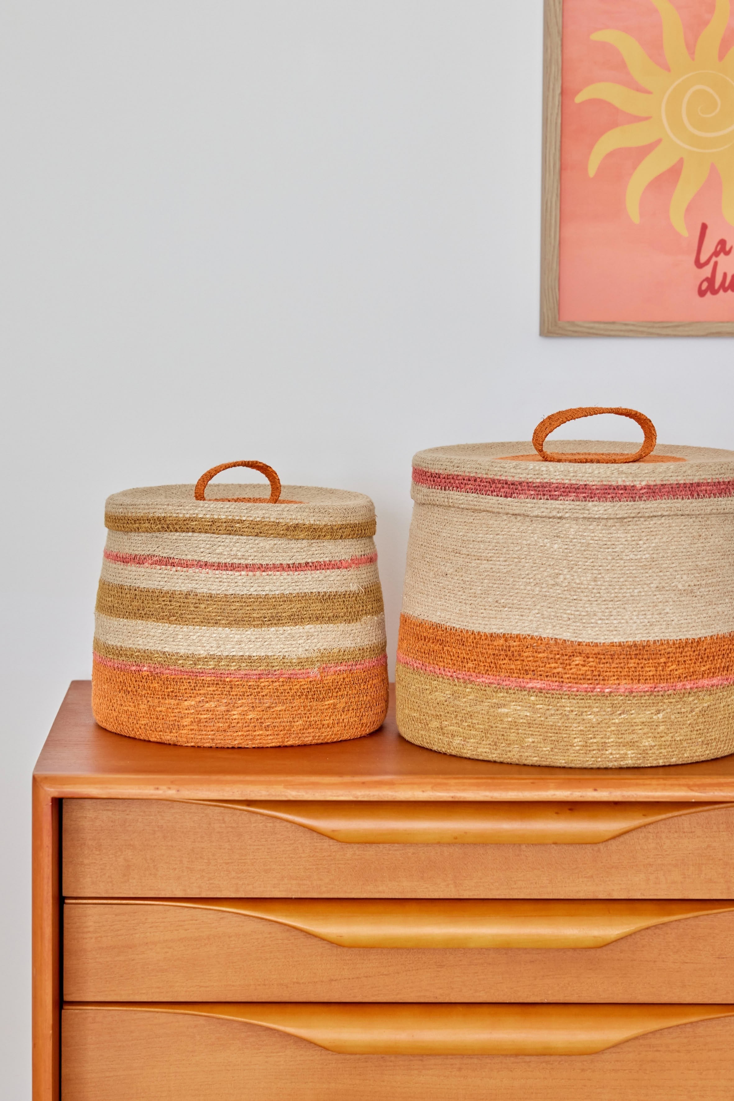 Traditionally woven in seagrass and decorated with colorful stripes, it combines practicality and decorative spirit.