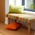 Its wide colorful stripes—curry yellow, pink, green, and natural—bring sunny energy to your space. Mounted on a solid wood base, it combines sturdiness and authenticity.