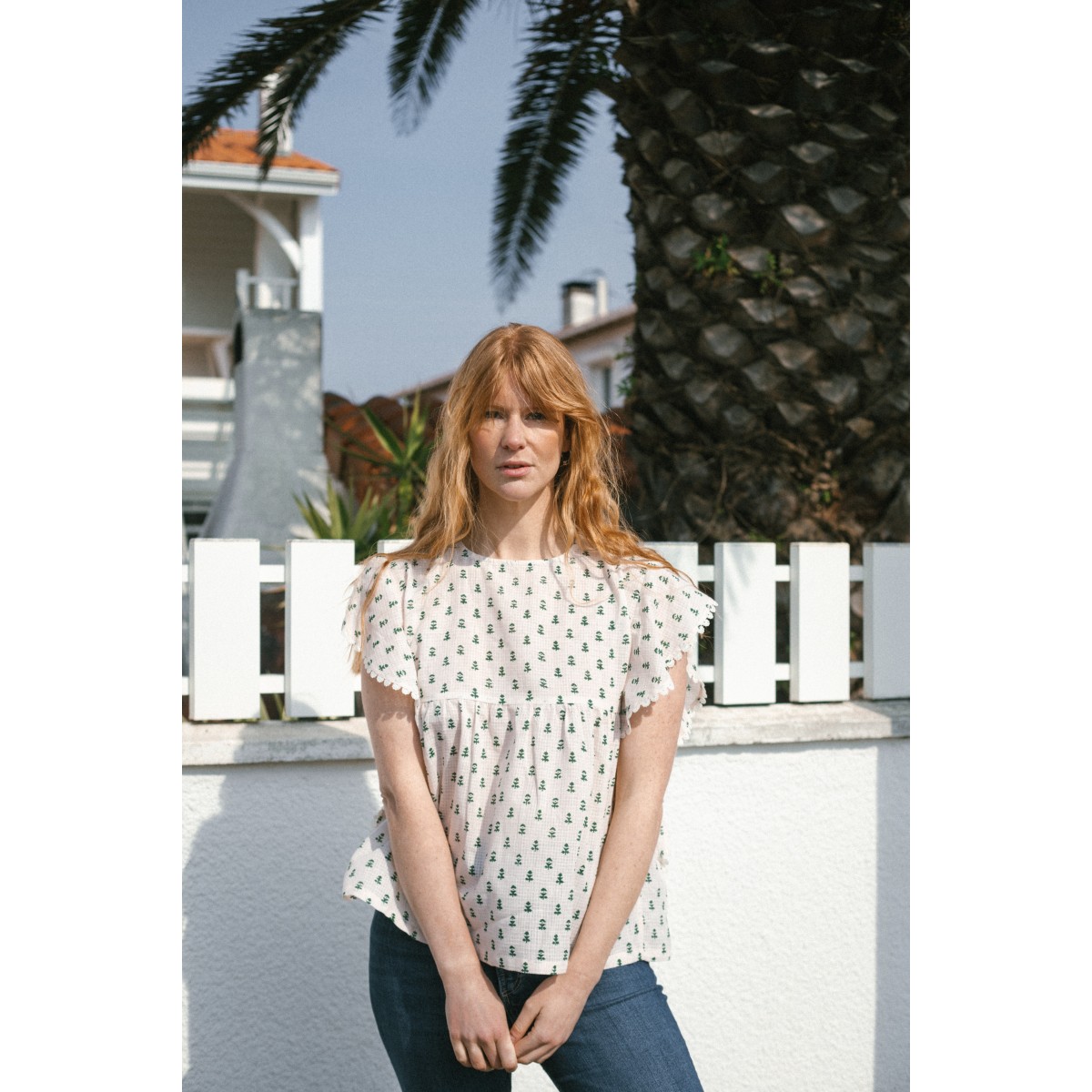 This bohemian style blouse will delights you with its gathered ruffles and its “vintage” braids.