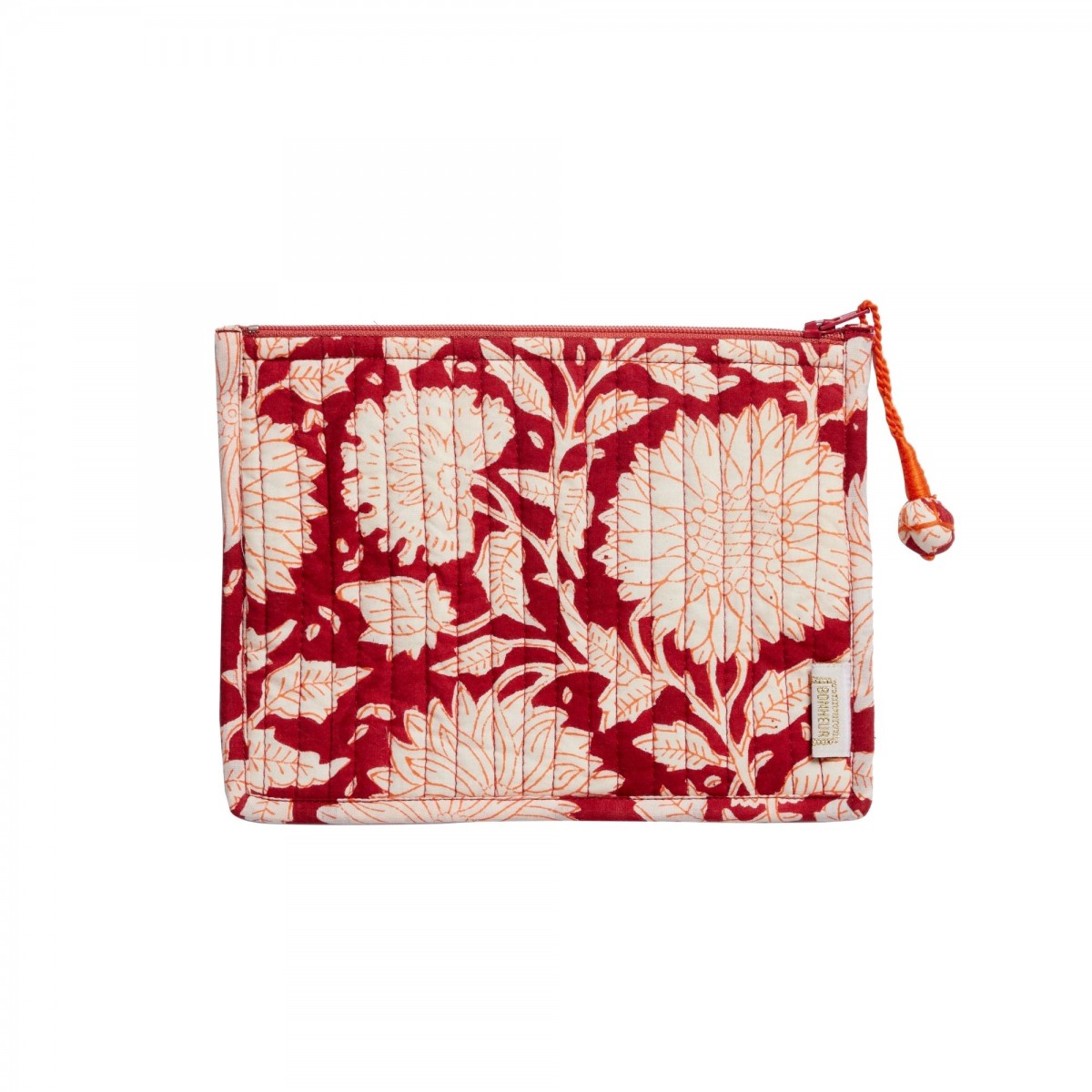 Hand-printed using block printing, it combines softness, functionality and a touch of craftsmanship. Quilted, lined with cotton and decorated with a handmade pompom, it has everything to please.