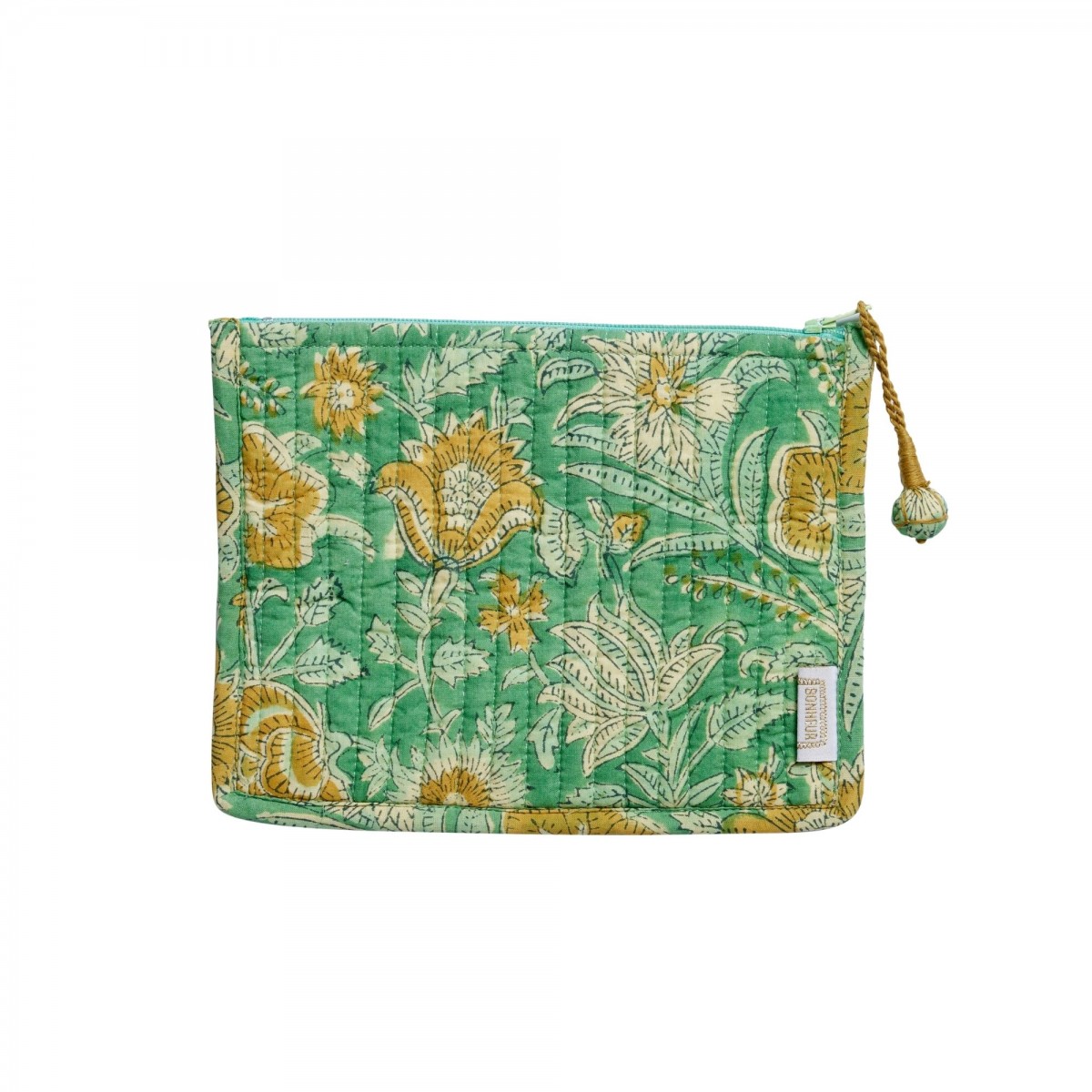 Hand-printed using block printing, it combines softness, functionality and a touch of craftsmanship. Quilted, lined with cotton and decorated with a handmade pompom, it has everything to please.