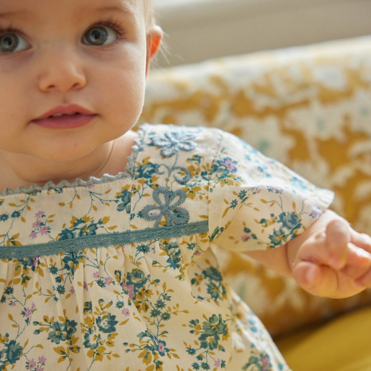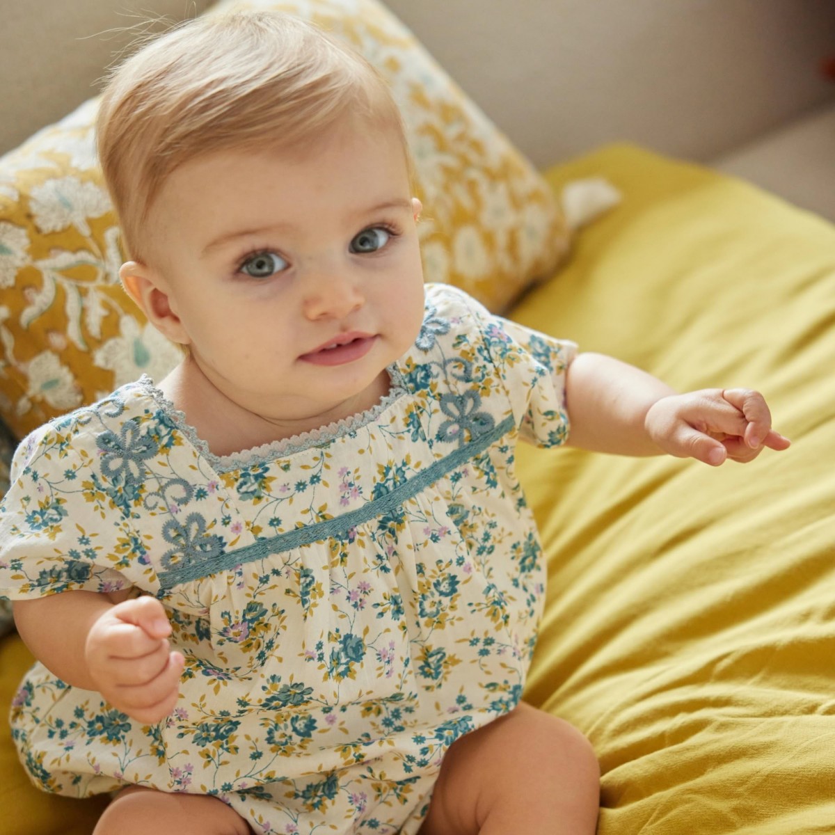 Made from soft pure cotton poplin, it is enhanced by an exclusive floral print in ecru and blue shades.