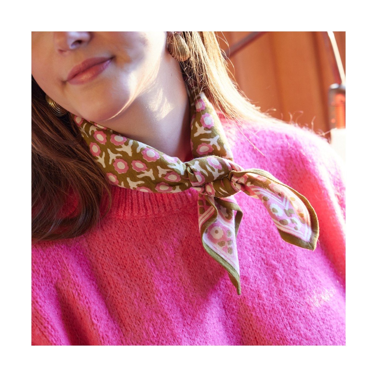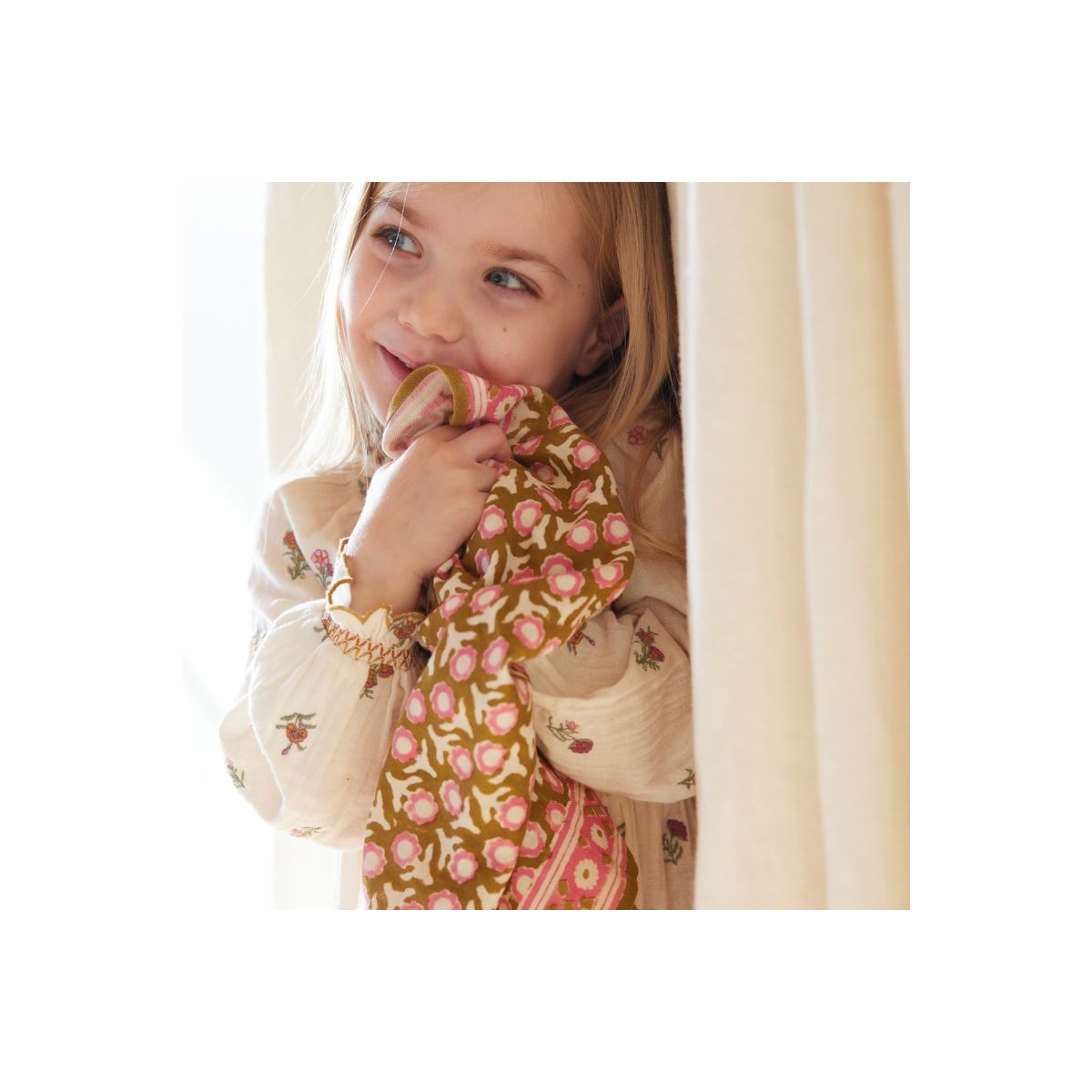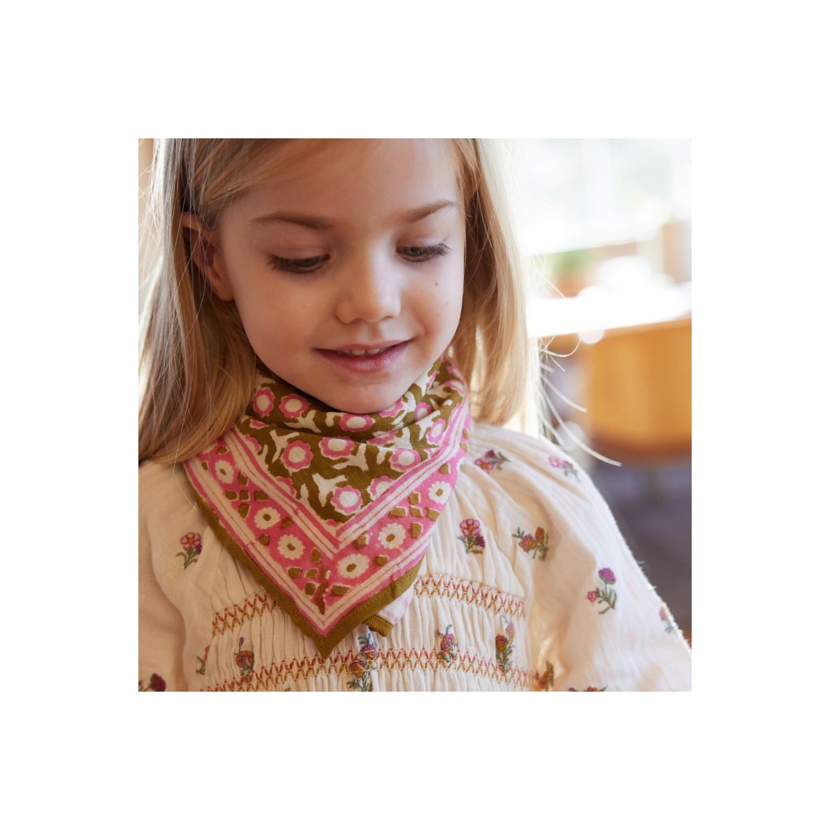 Designed for kids, but not only: this 60 x 60 cm scarf accompanies children to school, to the beach or on walks, and can also be worn as a bandana in the hair, around the neck or attached to a bag.