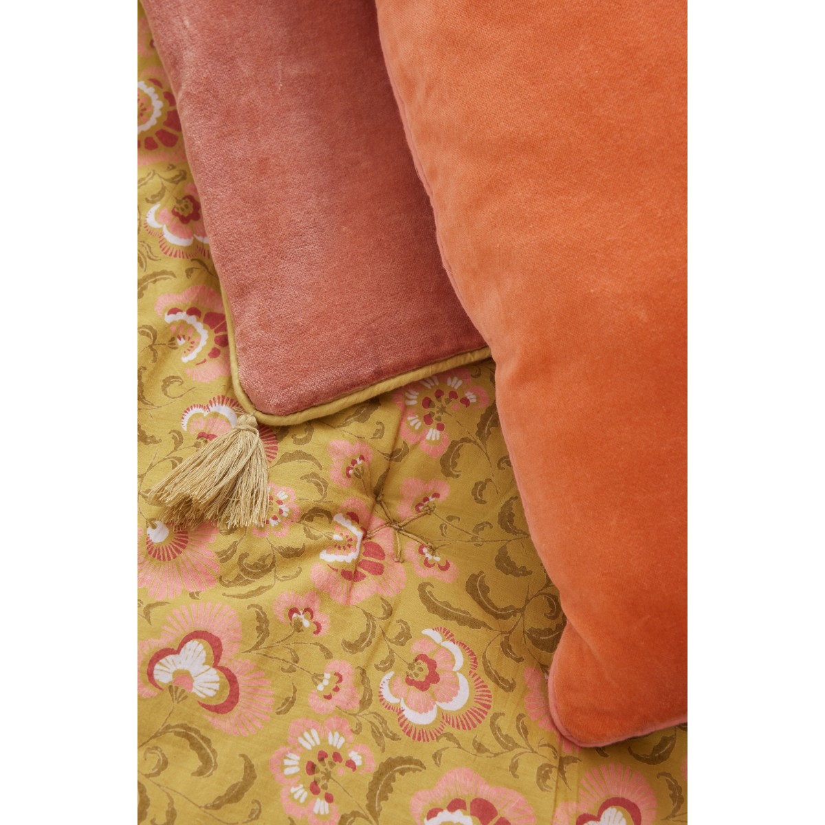 Ideal for bringing softness and comfort to a sofa, banquette or end of bed, its soft upholstery is delicately held together by hand-embroidered crosses. The iconic Bonheur du Jour pompoms add a pretty bohemian touch.