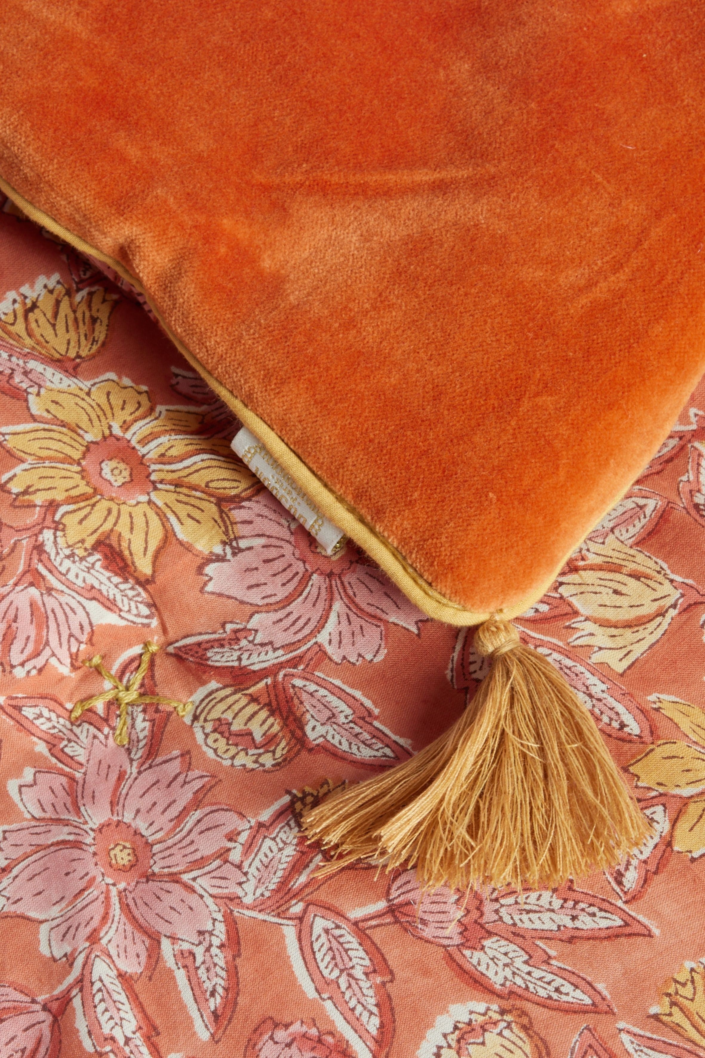Ideal for bringing softness and comfort to a sofa, banquette or end of bed, its soft upholstery is delicately held together by hand-embroidered crosses. The iconic Bonheur du Jour pompoms add a pretty bohemian touch.