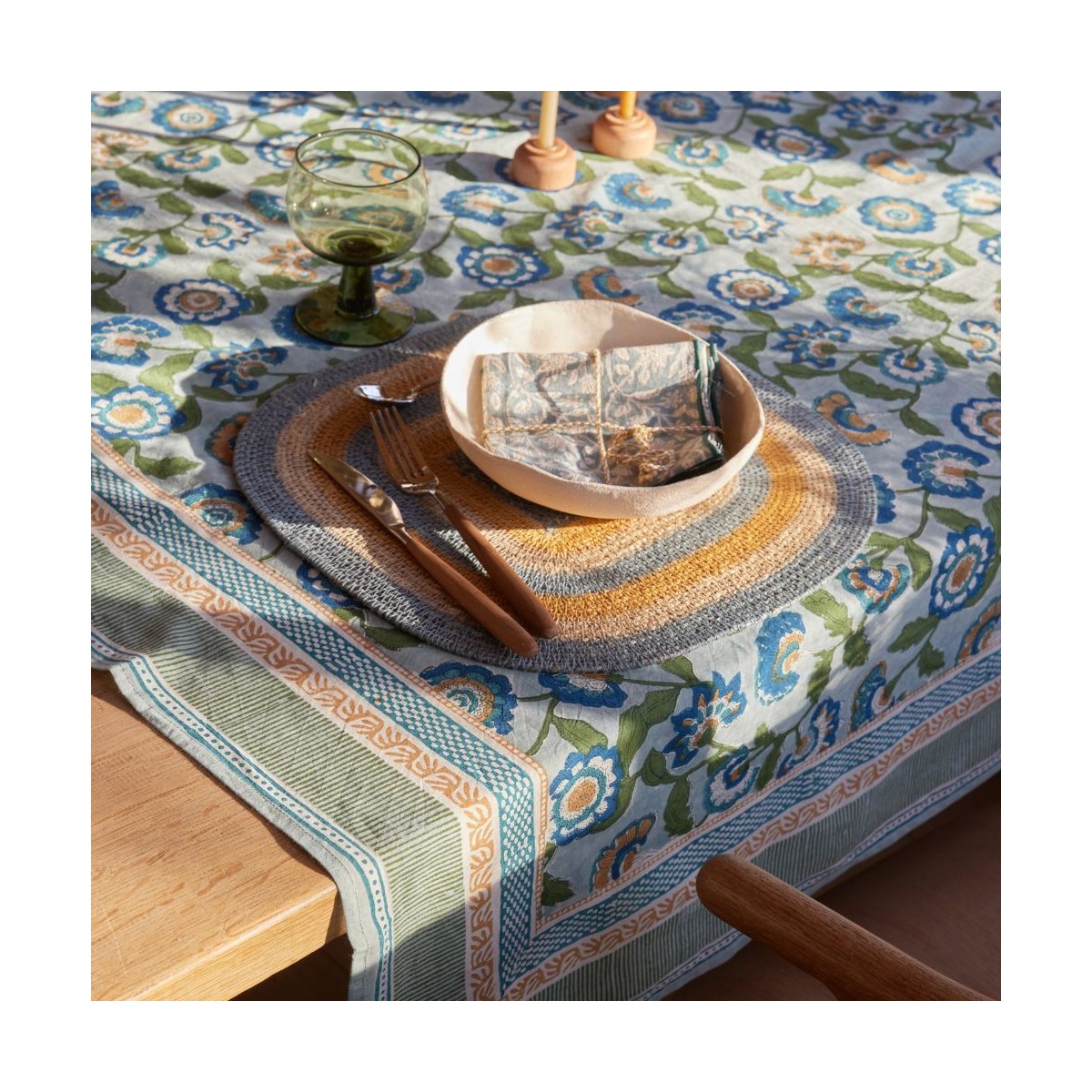 Place on a large table for family meals or lunches with friends, in the garden or indoors. It lends itself to all occasions and can be mixed and matched with our printed napkins, sea rush placemats and colorful candleholders. A cheerful, bohemian spirit to match your mood.