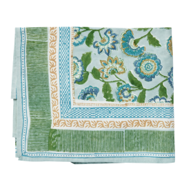 Its floral motif created in Jaipur using the traditional block print technique. Each motif is applied by hand using finely carved wooden stamps. It's a slow-paced printing process that lends relief to the motif, micro irregularities that we love, and a real soul to the piece.
