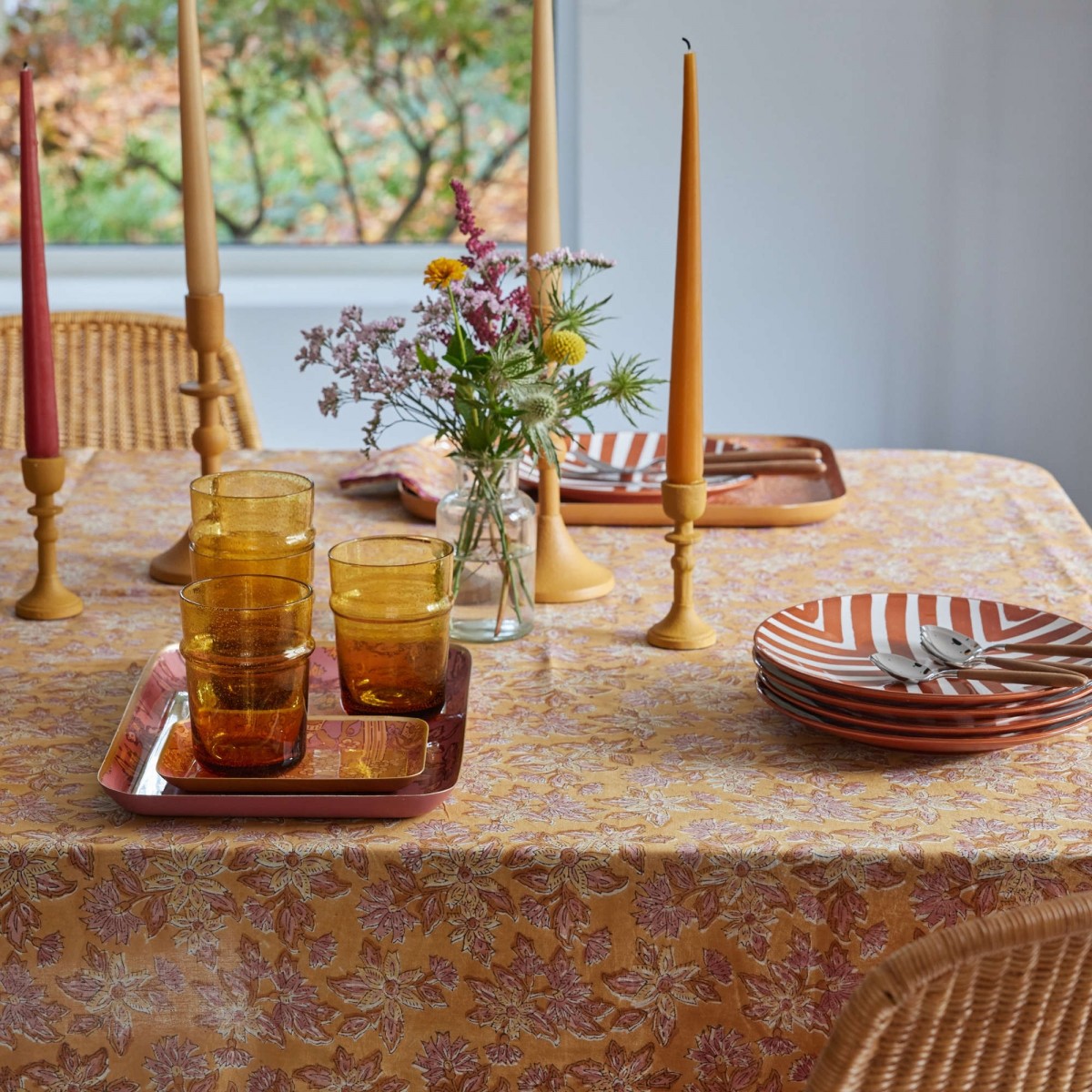 Place on a large table for family meals or lunches with friends, in the garden or indoors. It lends itself to all occasions and can be mixed and matched with our printed napkins, sea rush placemats and colorful candleholders. A cheerful, bohemian spirit to match your mood.