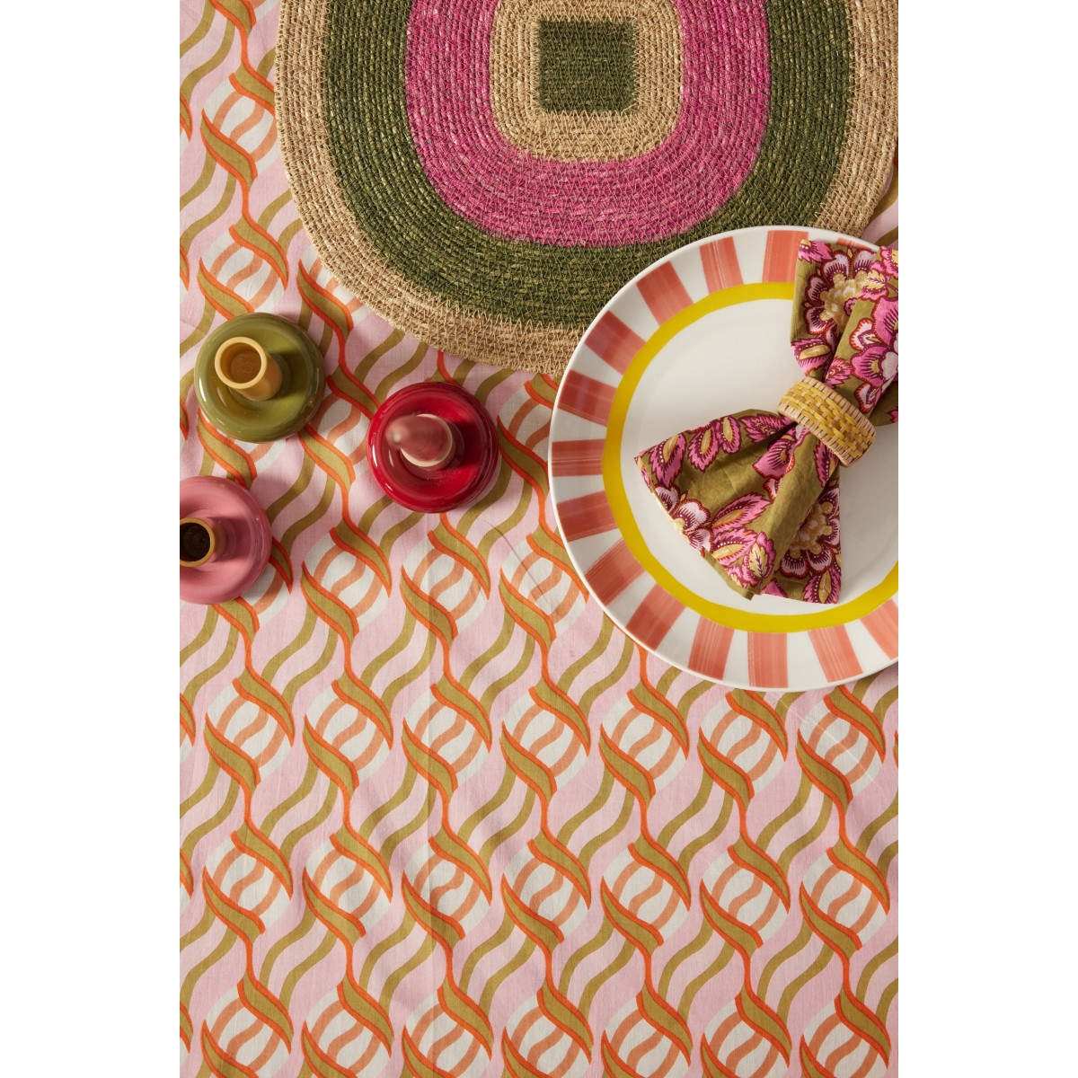 Place on a large table for family meals or lunches with friends, in the garden or indoors. It lends itself to all occasions and can be mixed and matched with our printed napkins, sea rush placemats and colorful candleholders. A cheerful, bohemian spirit to match your mood.