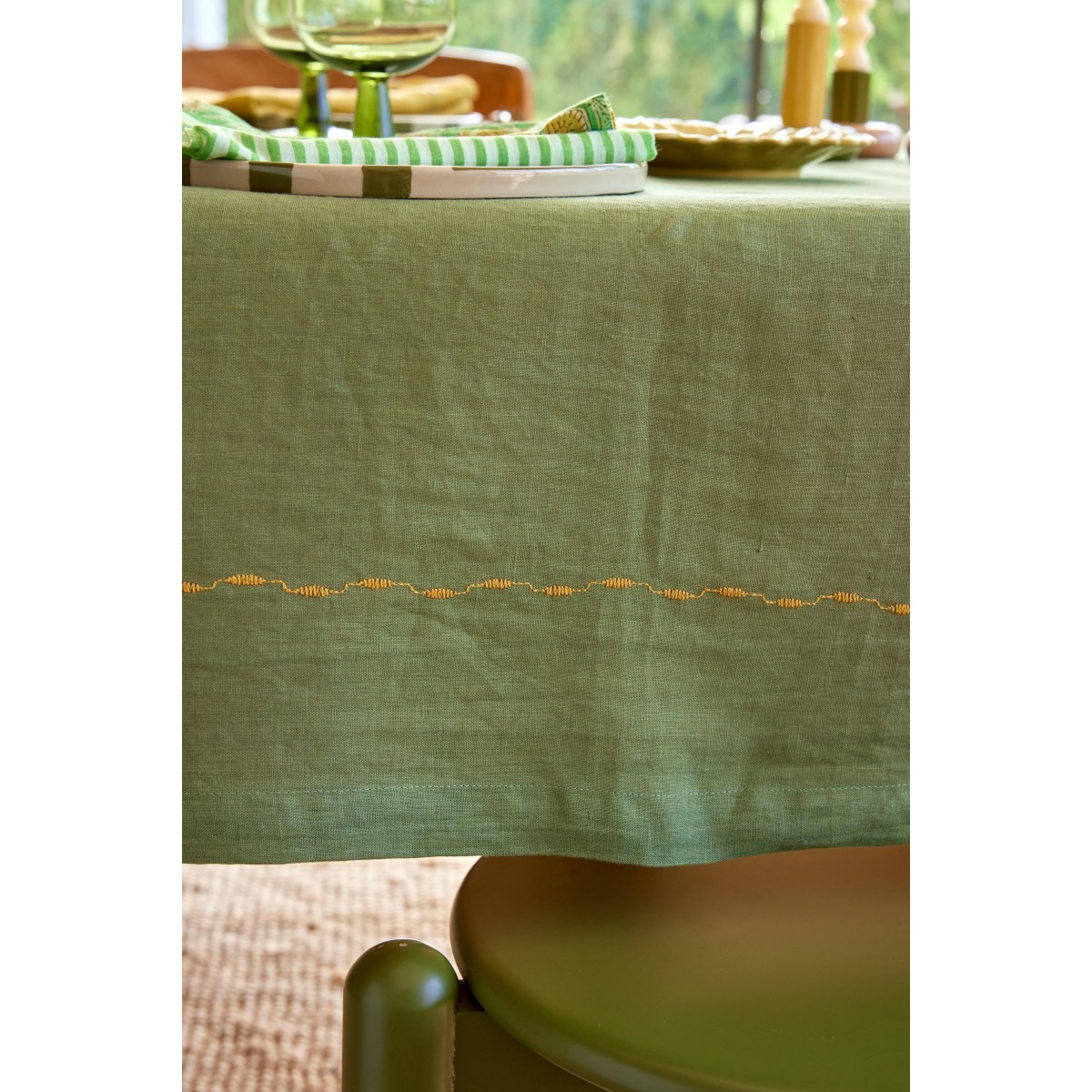 This tablecloth is delicately embroidered with a striking decorative stitch for an extra touch of refinement.