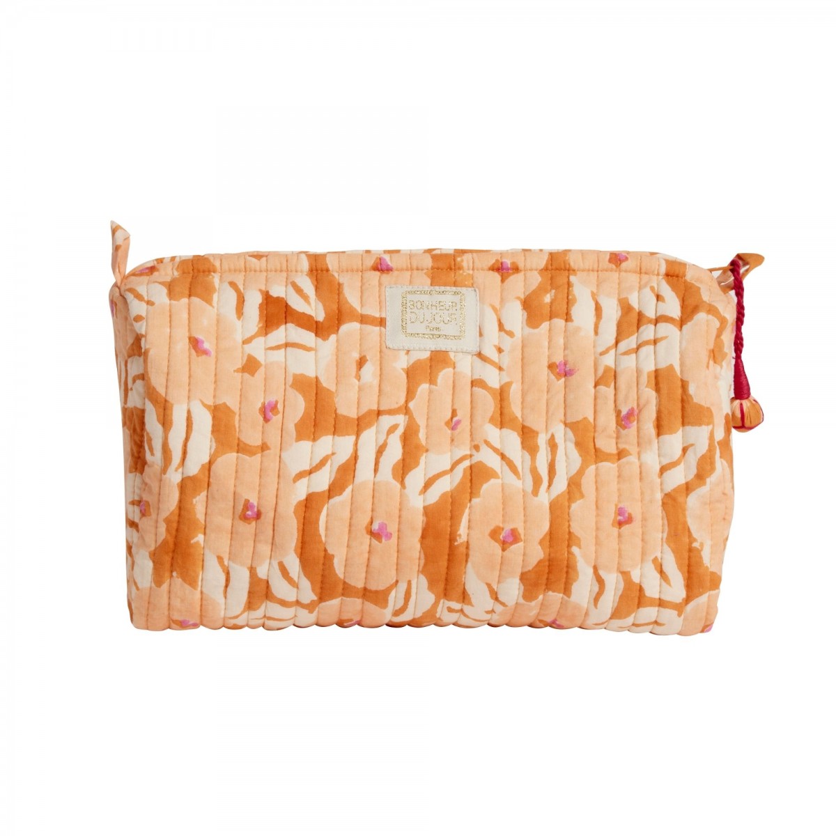 Details: zip opening, handmade tassels, vertical quilting, cotton-lined interior, compartments for the large model