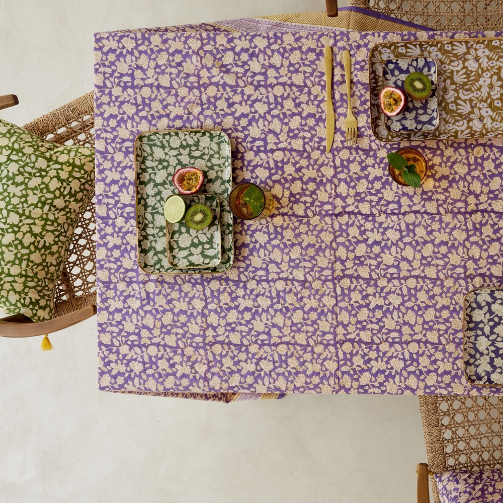 À poser sur une grande table pour les repas en famille ou les déjeuners entre amis, dans le jardin comme à l’intérieur. Elle se prête à toutes les occasions et se mixe avec nos serviettes imprimées, nos sets de table en jonc de mer ou encore nos bougeoirs colorés. Un esprit bohème et joyeux à décliner selon vos envies.