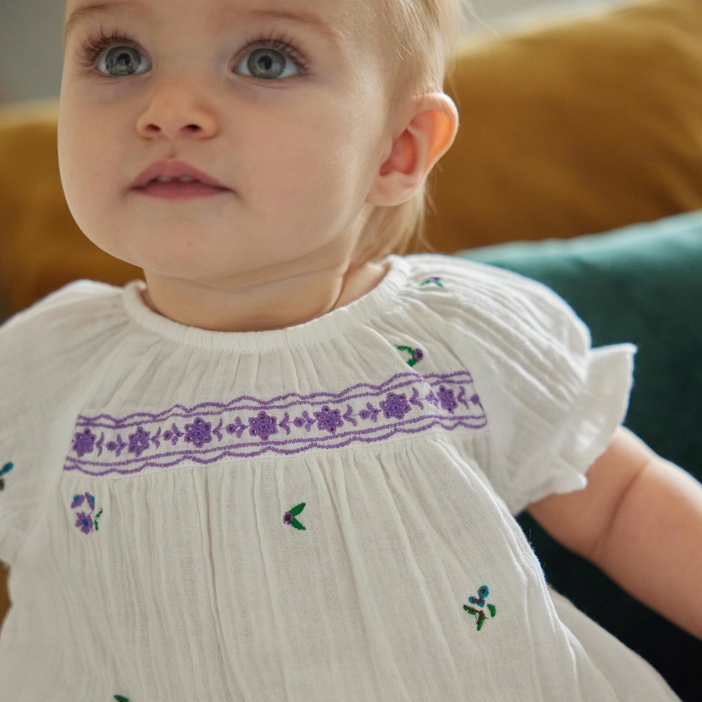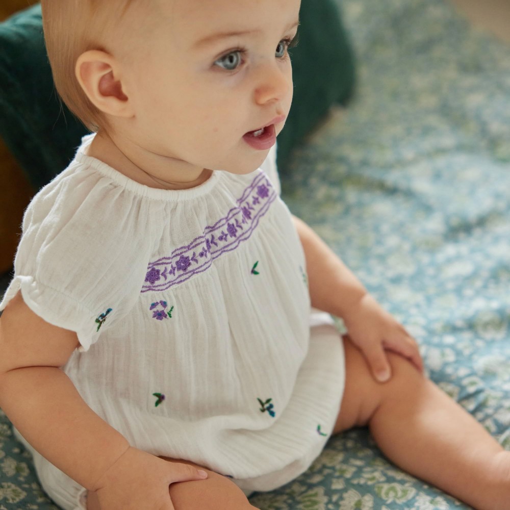 La combinaison Gaby séduit par sa broderie florale délicatement posée sur l’empiècement devant, dessinée par notre équipe de création.