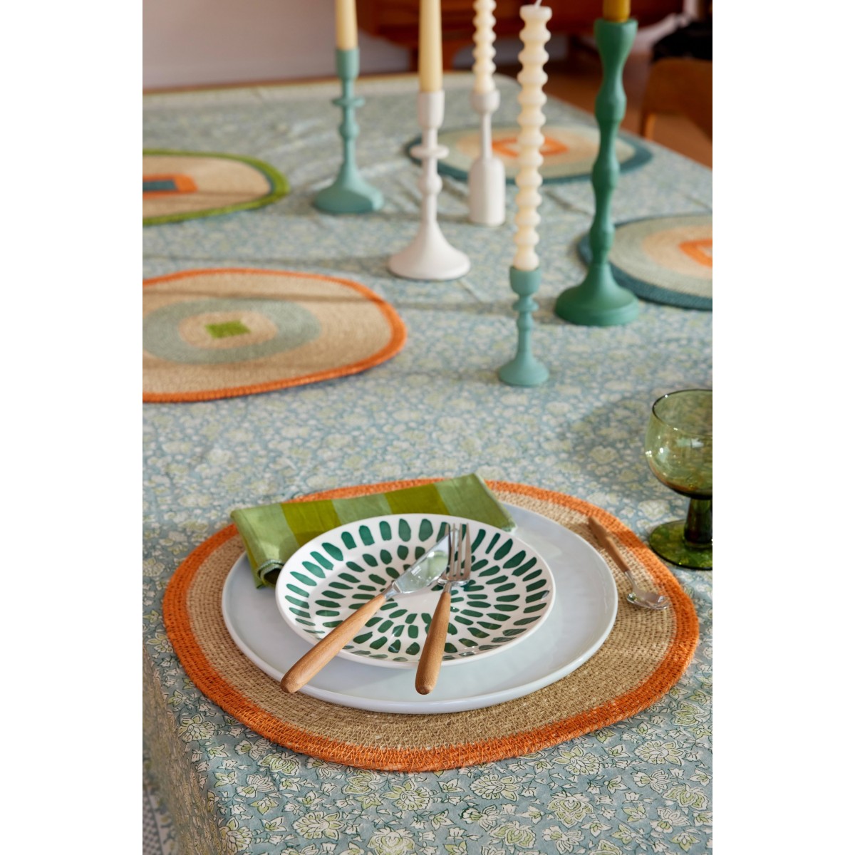 À poser sur une grande table pour les repas en famille ou les déjeuners entre amis, dans le jardin comme à l’intérieur. Elle se prête à toutes les occasions et se mixe avec nos serviettes imprimées, nos sets de table en jonc de mer ou encore nos bougeoirs colorés. Un esprit bohème et joyeux à décliner selon vos envies.