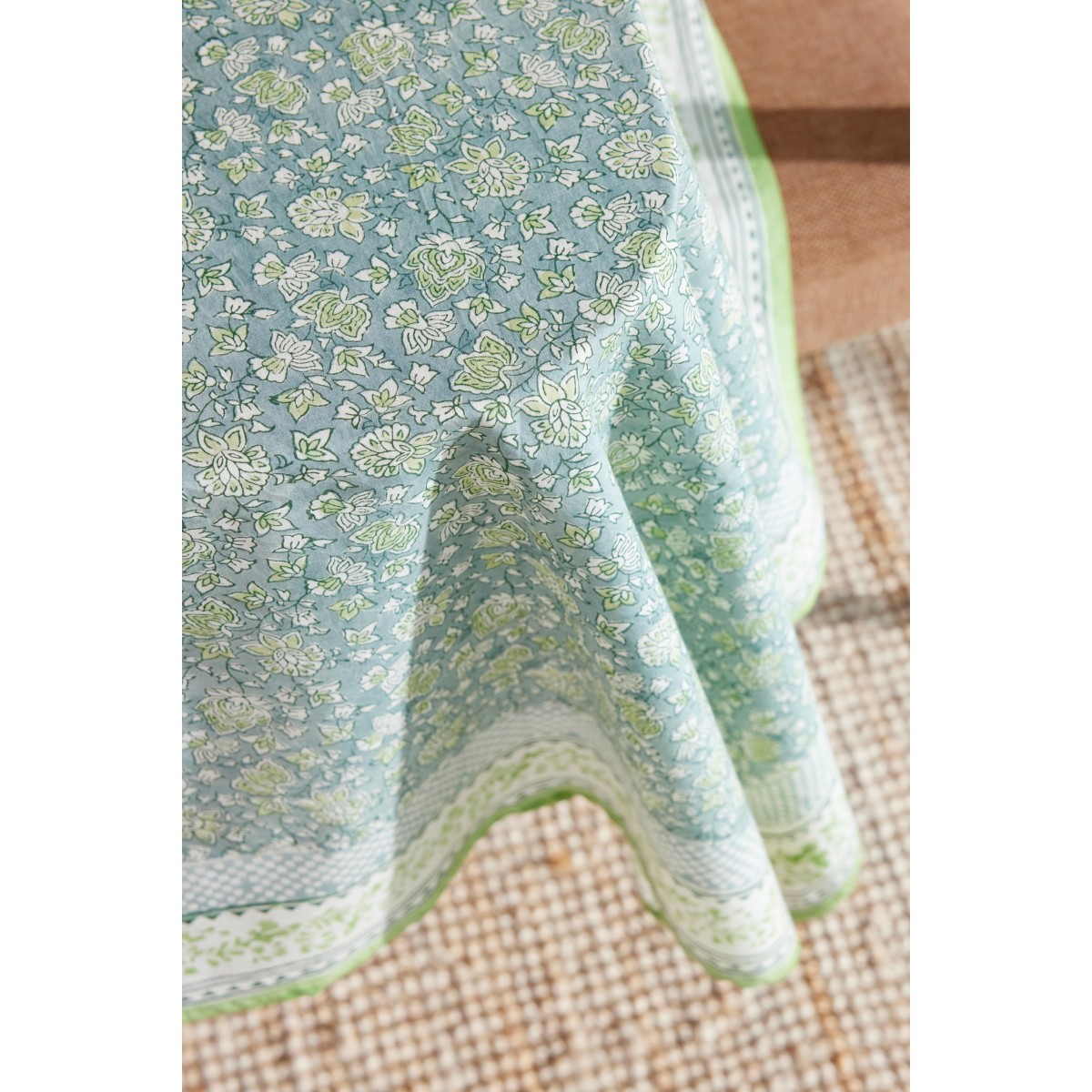 Son motif floral a été réalisé à Jaipur selon la technique artisanale du block print. Chaque motif est apposé à la main à l’aide de tampons de bois finement sculptés. Une impression au rythme lent, qui donne du relief au motif, des micro-irrégularités qu’on adore, et une vraie âme à la pièce.