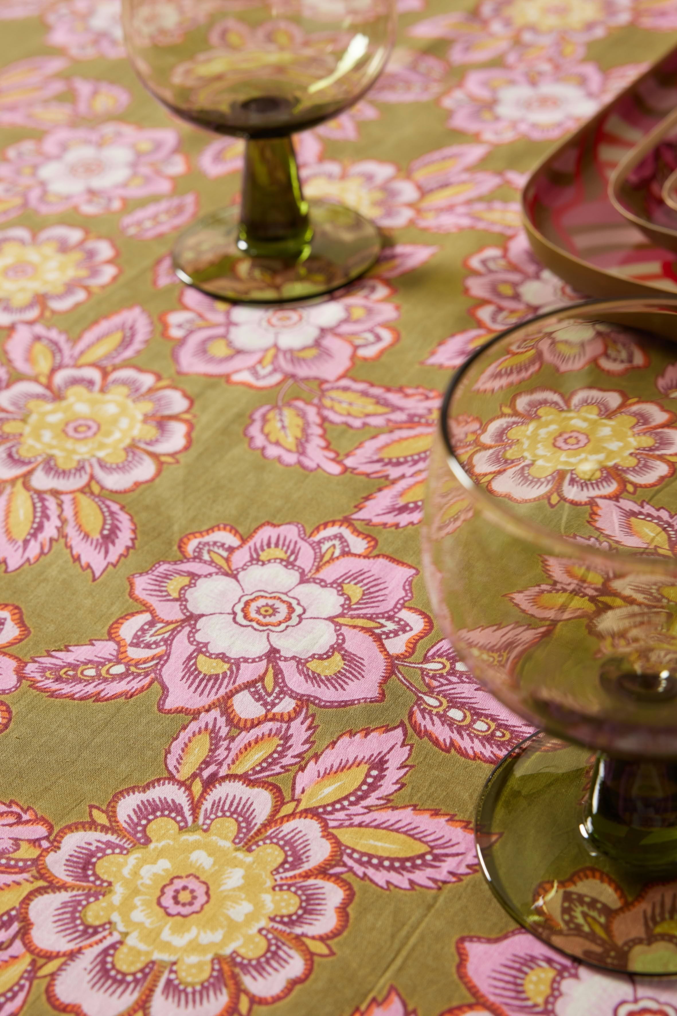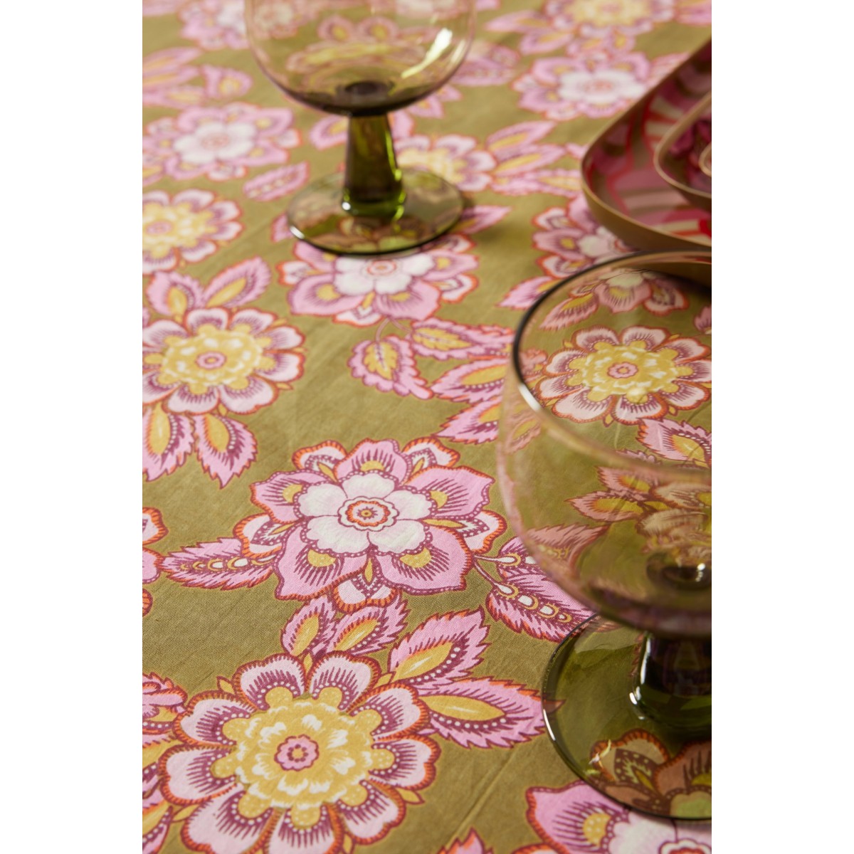 Nappe bohème imprimée fleurs indiennes.