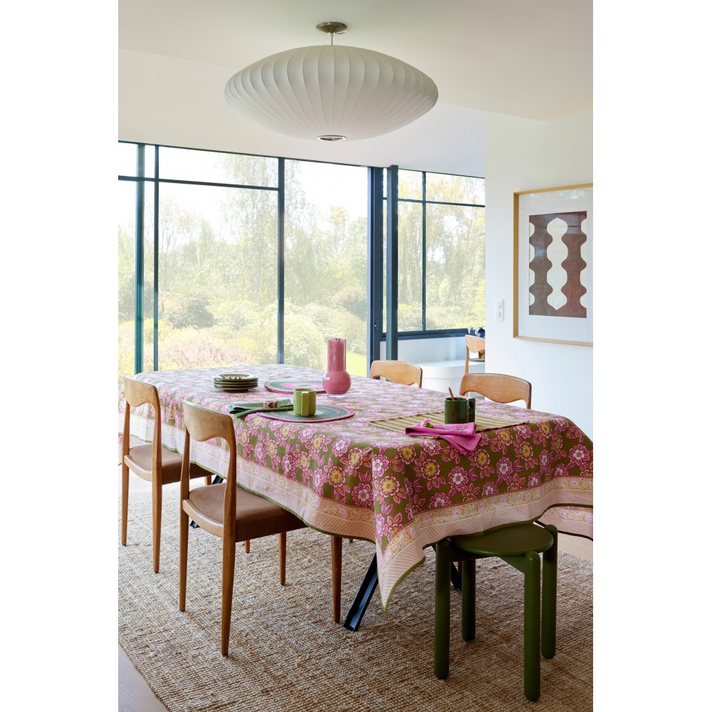 À poser sur une grande table pour les repas en famille ou les déjeuners entre amis, dans le jardin comme à l’intérieur. Elle se prête à toutes les occasions et se mixe avec nos serviettes imprimées, nos sets de table en jonc de mer ou encore nos bougeoirs colorés. Un esprit bohème et joyeux à décliner selon vos envies.
