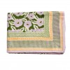 Son motif floral a été réalisé à Jaipur selon la technique artisanale du block print. Chaque motif est apposé à la main à l’aide de tampons de bois finement sculptés. Une impression au rythme lent, qui donne du relief au motif, des micro-irrégularités qu’on adore, et une vraie âme à la pièce.