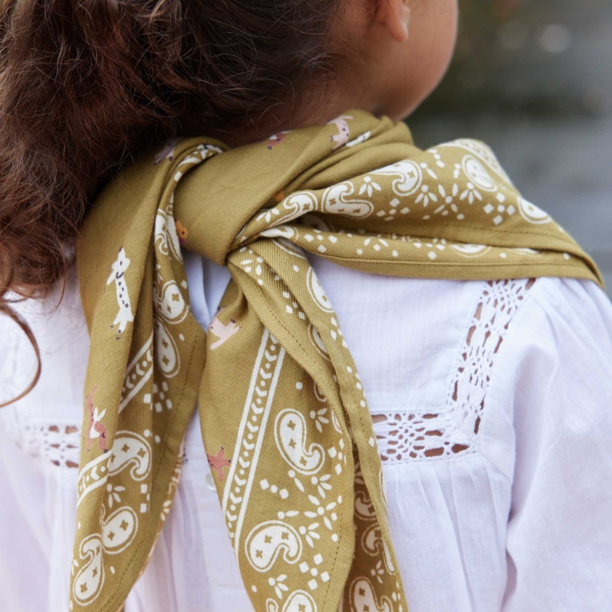 Pensé pour les kids, mais pas que : ce foulard 60 x 60 cm accompagne les enfants à l’école, à la plage ou en balade, et se détourne aussi en bandana dans les cheveux, autour du cou ou accroché à un sac.