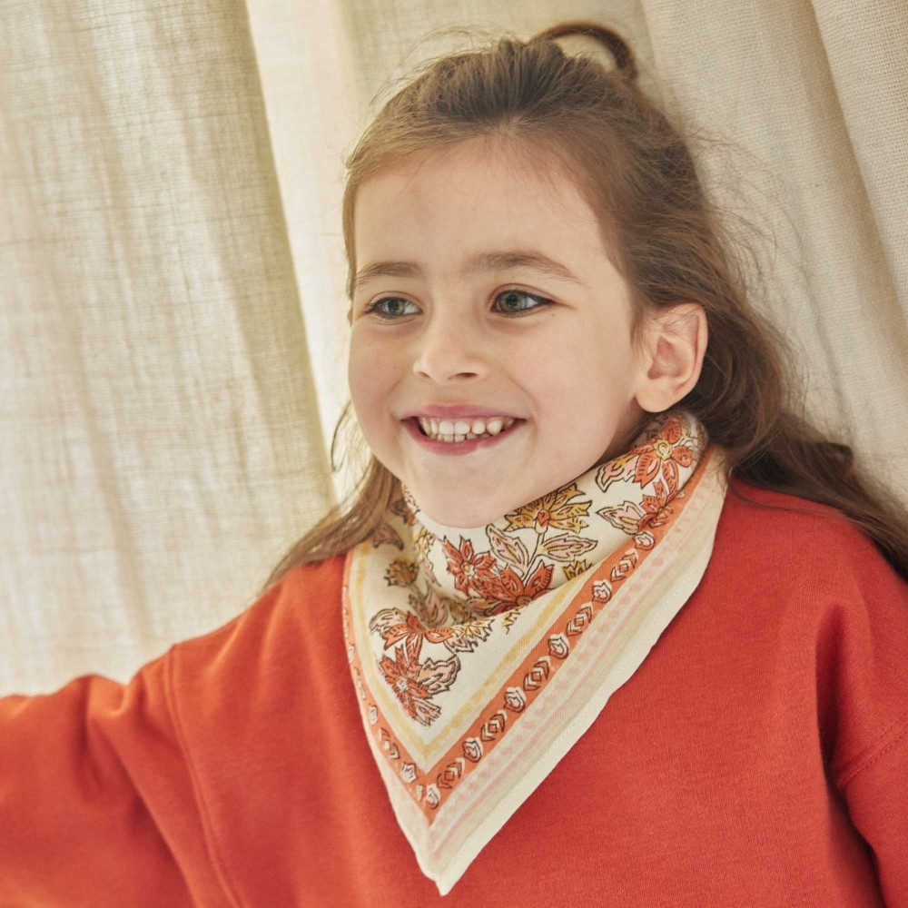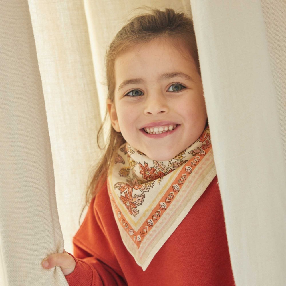 Pensé pour les kids, mais pas que : ce foulard 60 x 60 cm accompagne les enfants à l’école, à la plage ou en balade, et se détourne aussi en bandana dans les cheveux, autour du cou ou accroché à un sac.