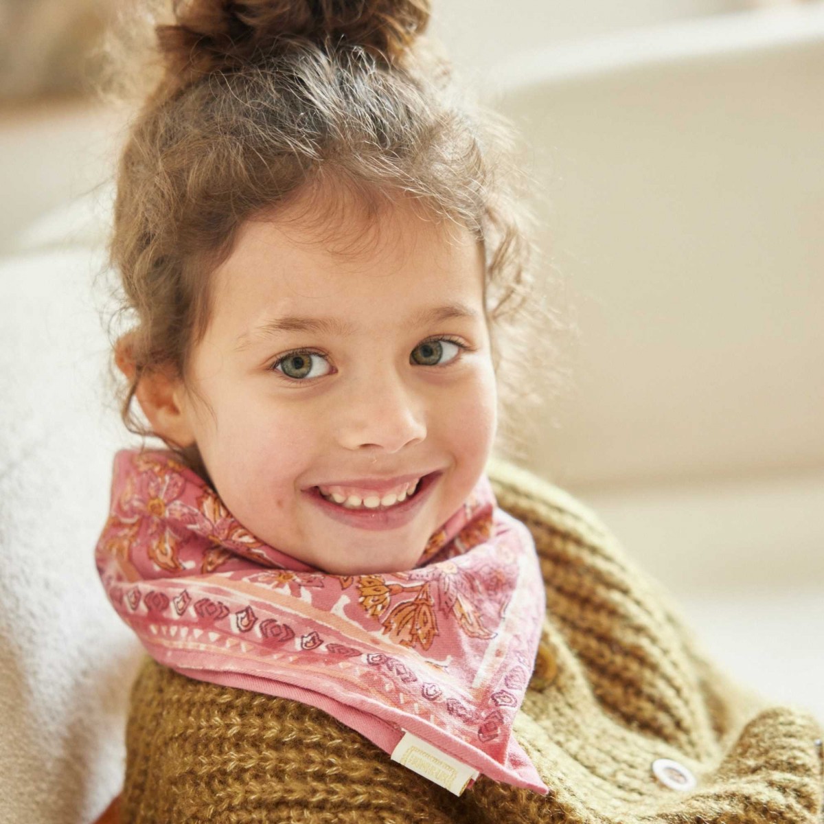 Pensé pour les kids, mais pas que : ce foulard 60 x 60 cm accompagne les enfants à l’école, à la plage ou en balade, et se détourne aussi en bandana dans les cheveux, autour du cou ou accroché à un sac.