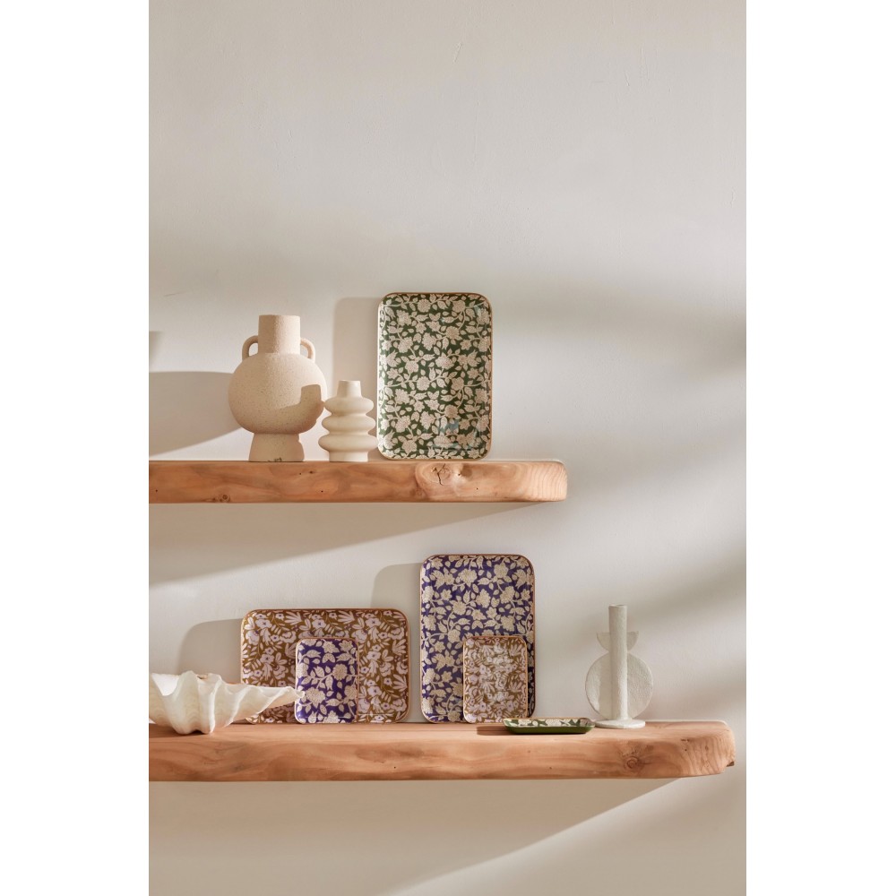 Plateau bohème chic à fleurs en métal émaillé.