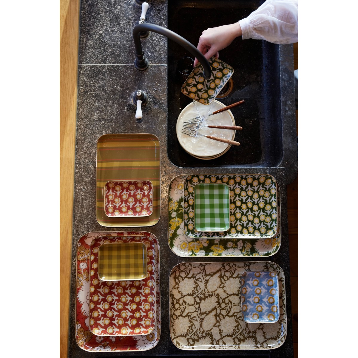Tous nos plateaux sont travaillés dans des motifs exclusifs à la marque dans nos palettes revisitées et mode.