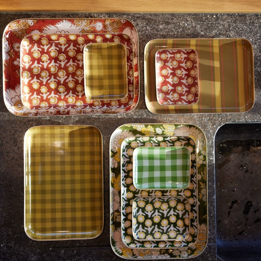 Tous nos plateaux sont travaillés dans des motifs exclusifs à la marque dans nos palettes revisitées et mode.