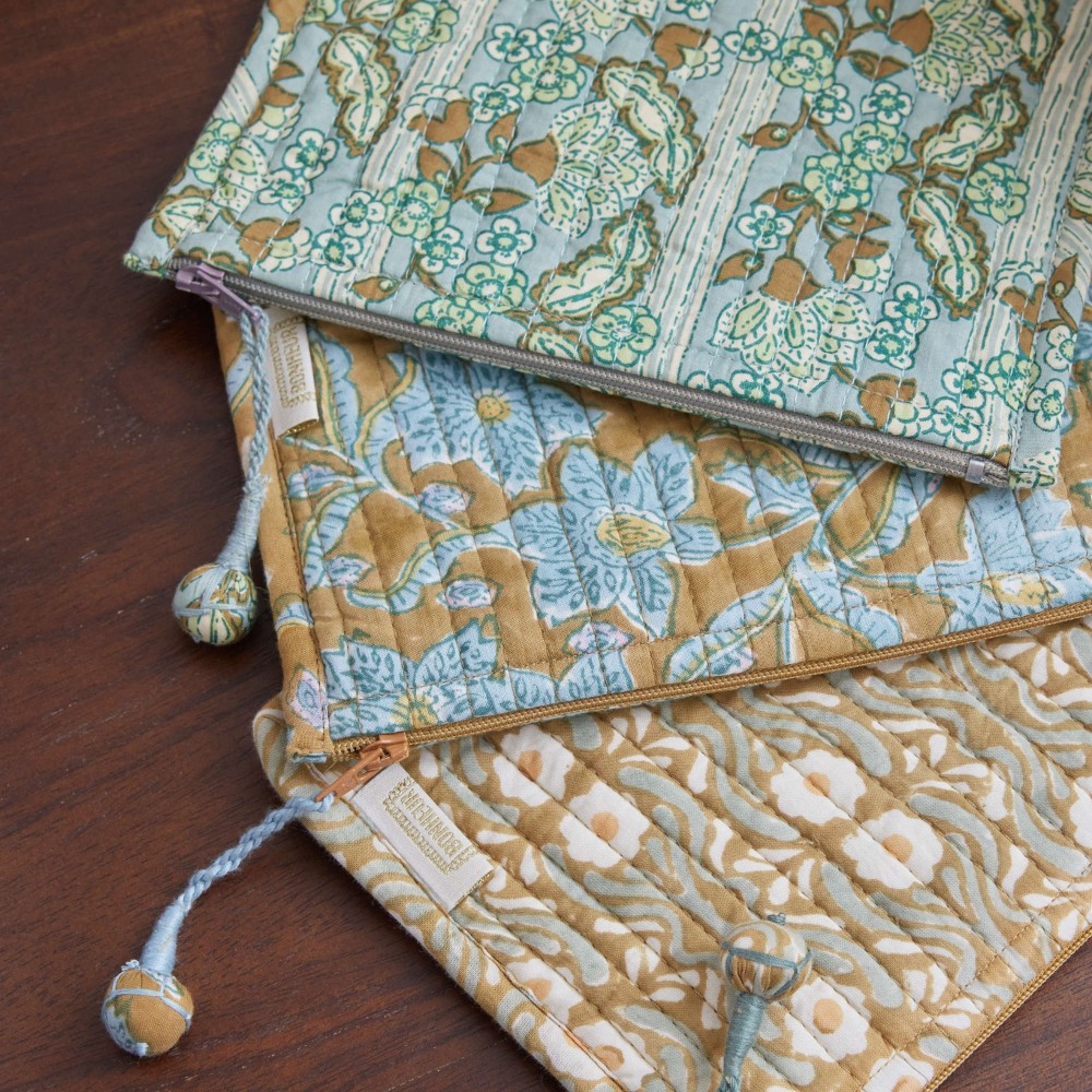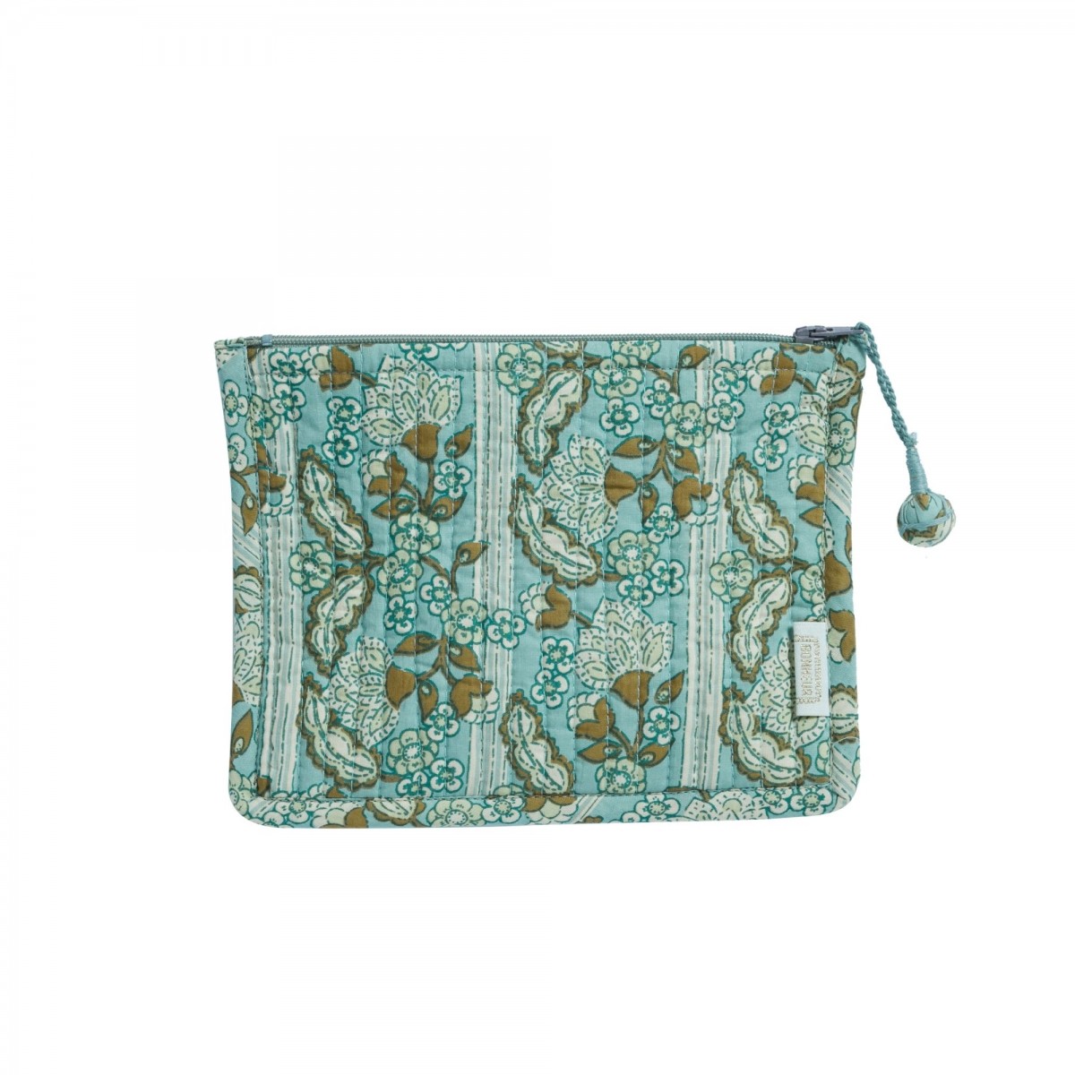Imprimée à la main en block print, elle allie douceur, fonctionnalité et touche artisanale. Matelassée, doublée en coton et ornée d’un pompon fait main, elle a tout pour plaire.