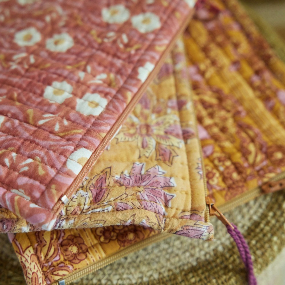 Imprimée à la main en block print, elle allie douceur, fonctionnalité et touche artisanale. Matelassée, doublée en coton et ornée d’un pompon fait main, elle a tout pour plaire.