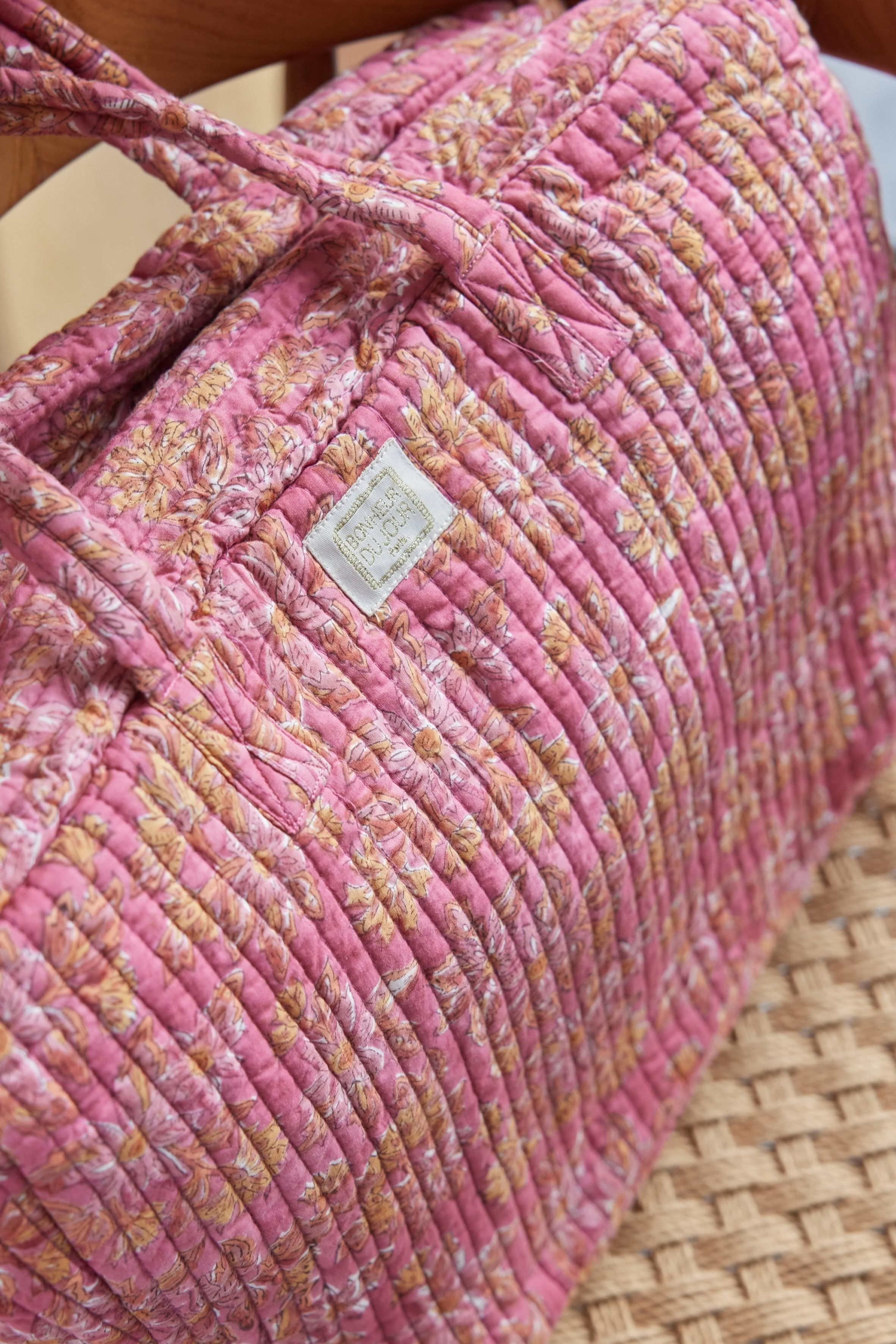 – Son imprimé floral réalisé à la main en block print, dans notre atelier partenaire