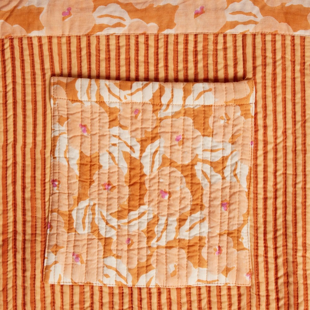 Chaque modèle est imprimé à la main à l’aide de tampons en bois, avec des pigments naturels. Un choix durable, un geste pour la planète et une vraie touche d’âme en plus.