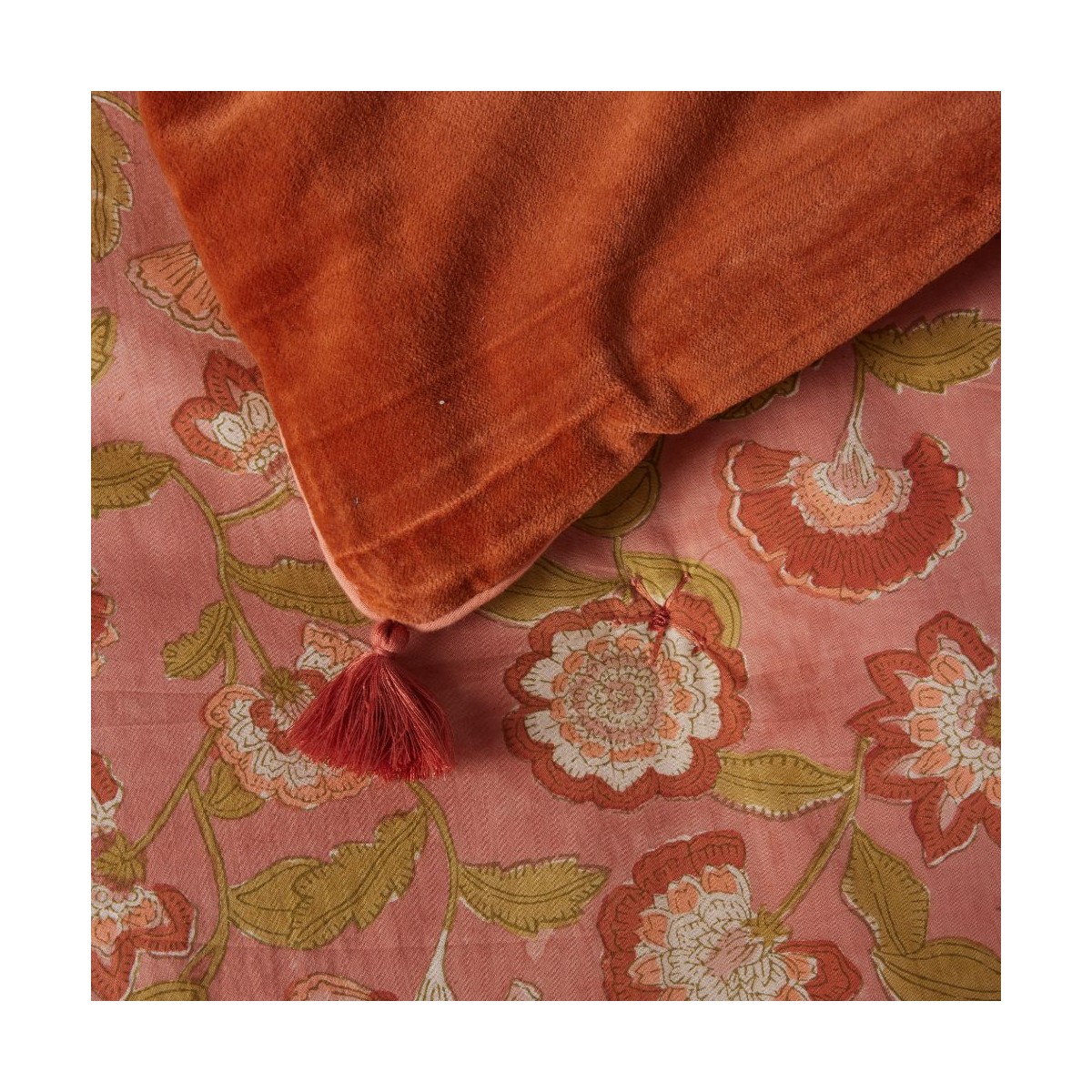 Changer l’ambiance d’une pièce en un clin d’œil ? C’est possible avec ce sofa cover aux allures bohèmes, imprimé à la main selon la technique ancestrale du block print.