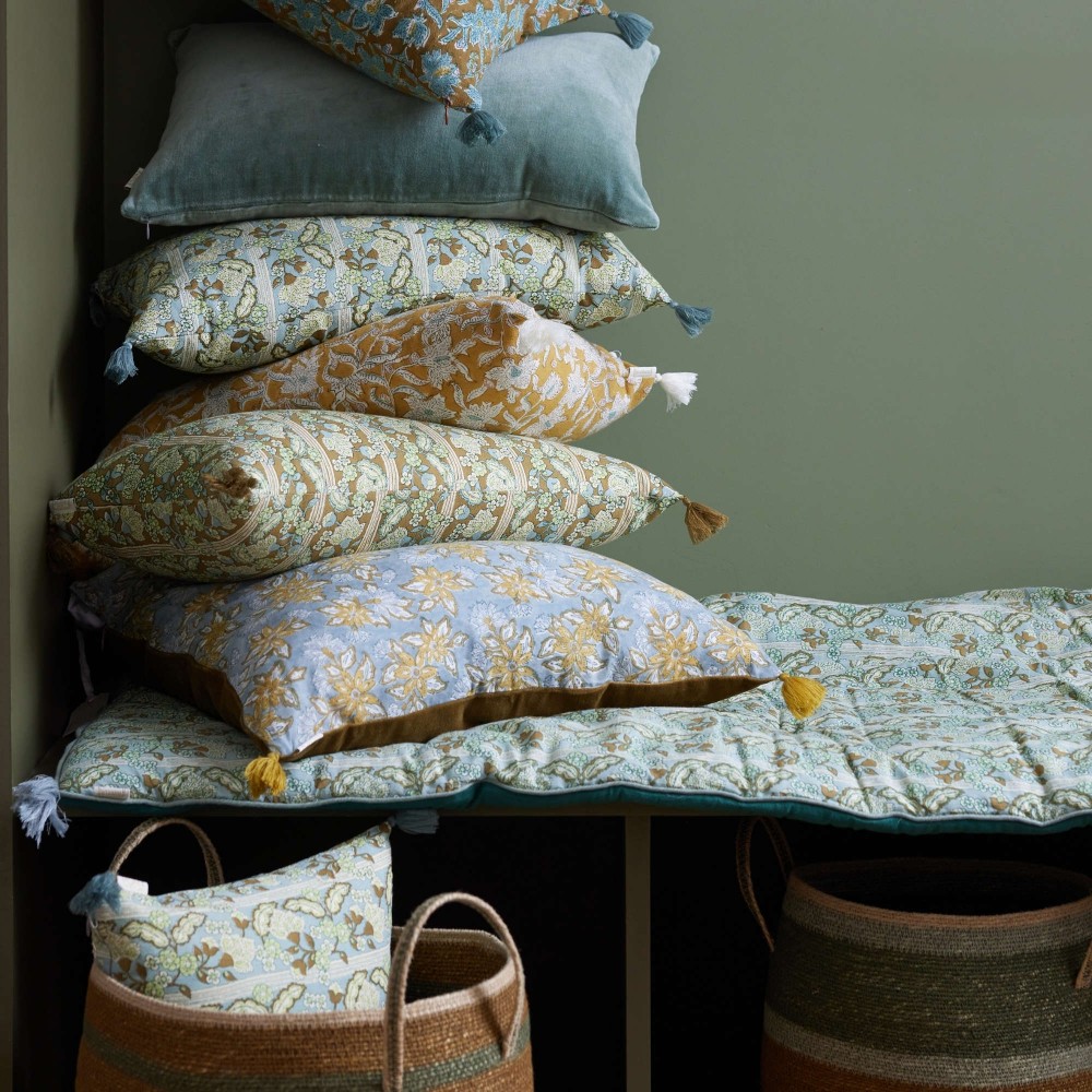 Changer l’ambiance d’une pièce en un clin d’œil ? C’est possible avec ce sofa cover aux allures bohèmes, imprimé à la main selon la technique ancestrale du block print.