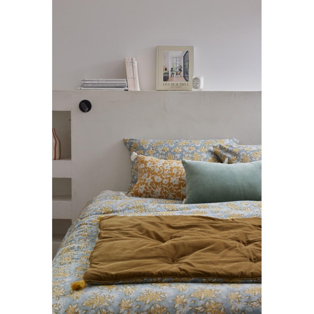 Changer l’ambiance d’une pièce en un clin d’œil ? C’est possible avec ce sofa cover aux allures bohèmes, imprimé à la main selon la technique ancestrale du block print.