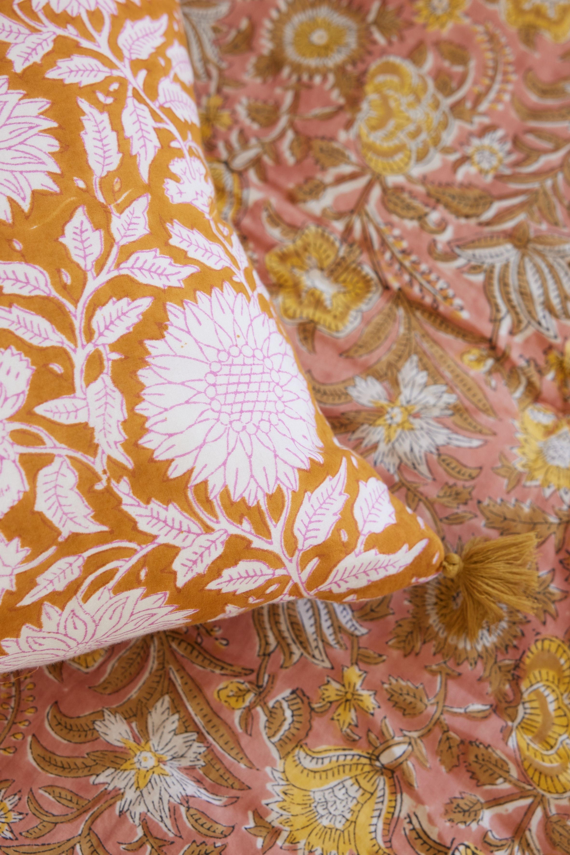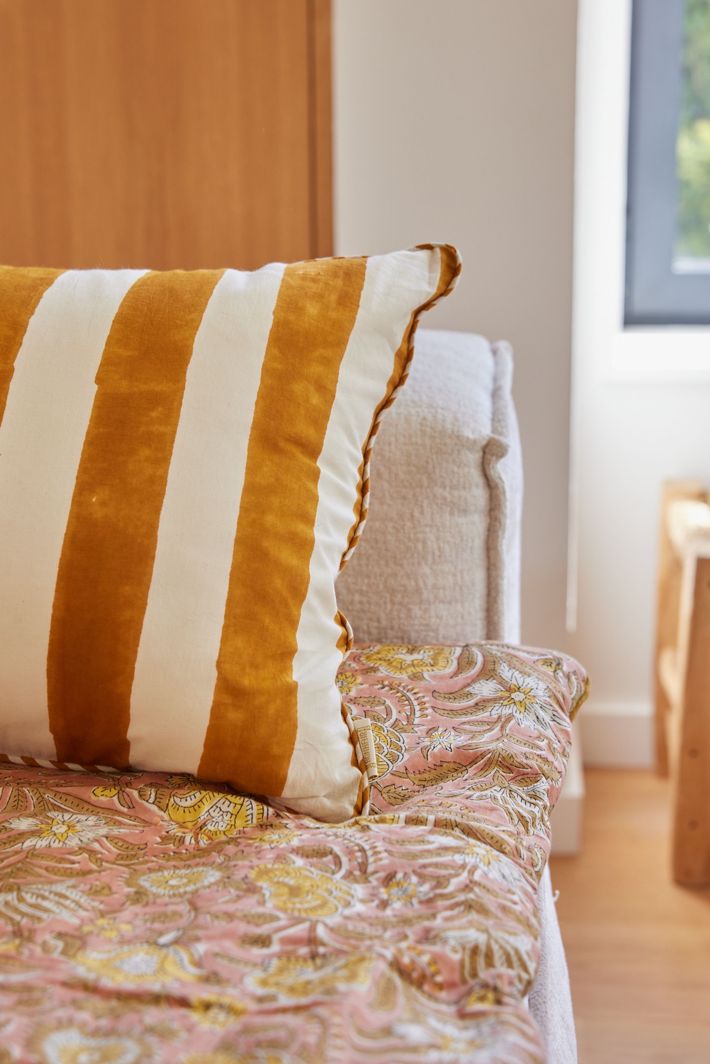 Changer l’ambiance d’une pièce en un clin d’œil ? C’est possible avec ce sofa cover aux allures bohèmes, imprimé à la main selon la technique ancestrale du block print.