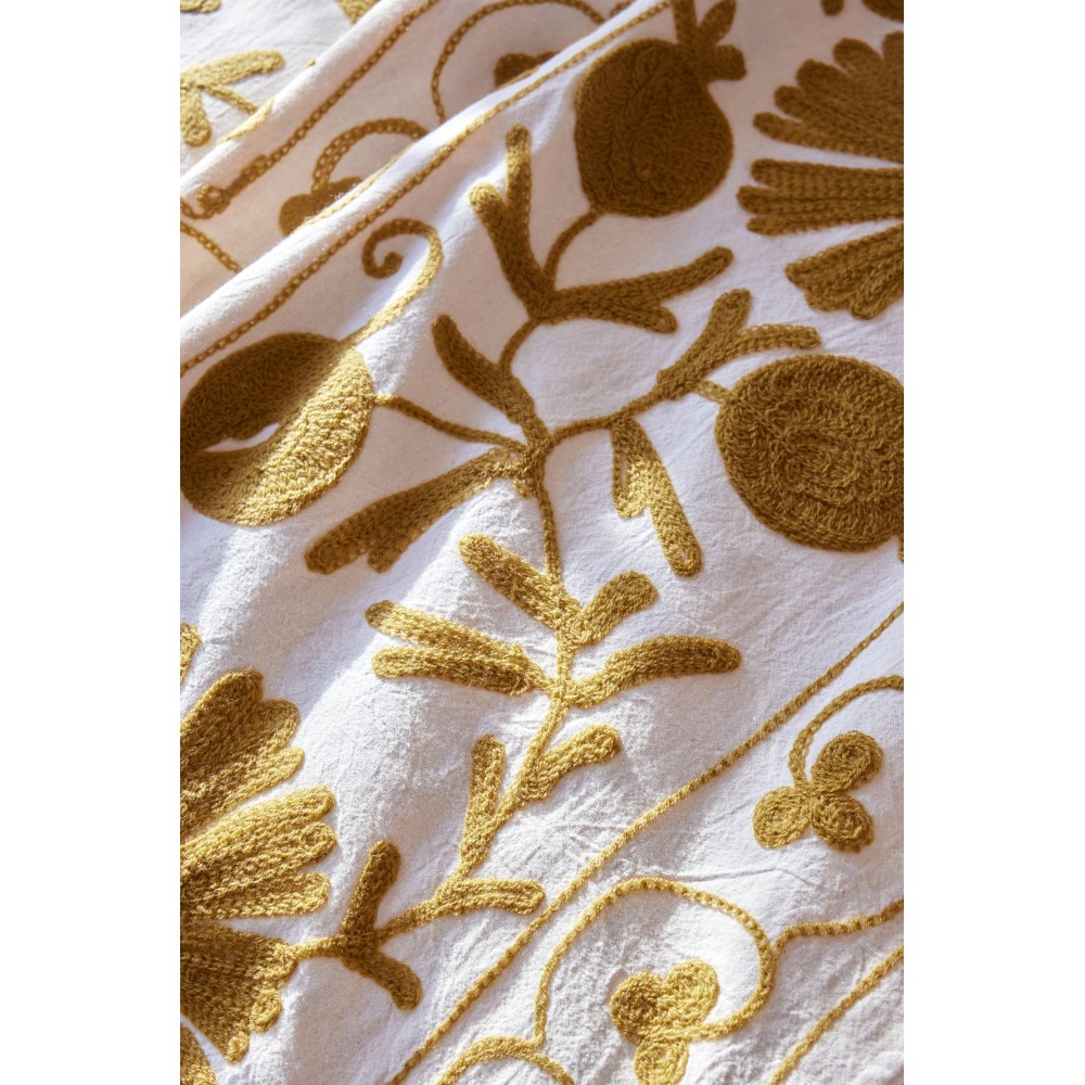 On aime sa broderie entièrement réalisée à la main, issue du savoir-faire ancestral indien de la broderie « Corneli », la délicatesse de ses motifs et le choix d’une palette contemporaine, facile à intégrer dans toutes les pièces de la maison.