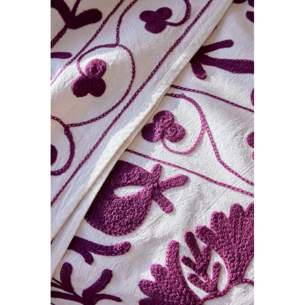 On aime sa broderie entièrement réalisée à la main, issue du savoir-faire ancestral indien de la broderie « Corneli », la délicatesse de ses motifs et le choix d’une palette contemporaine, facile à intégrer dans toutes les pièces de la maison.