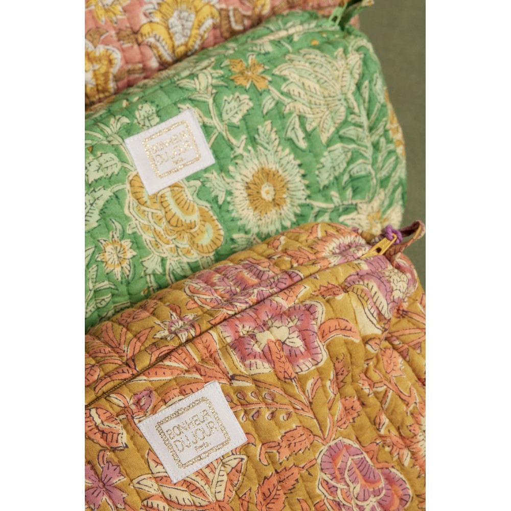 Une trousse de toilette douce, pratique et joliment imprimée, à glisser dans toutes les valises ou à poser sur l’étagère de la salle de bain.