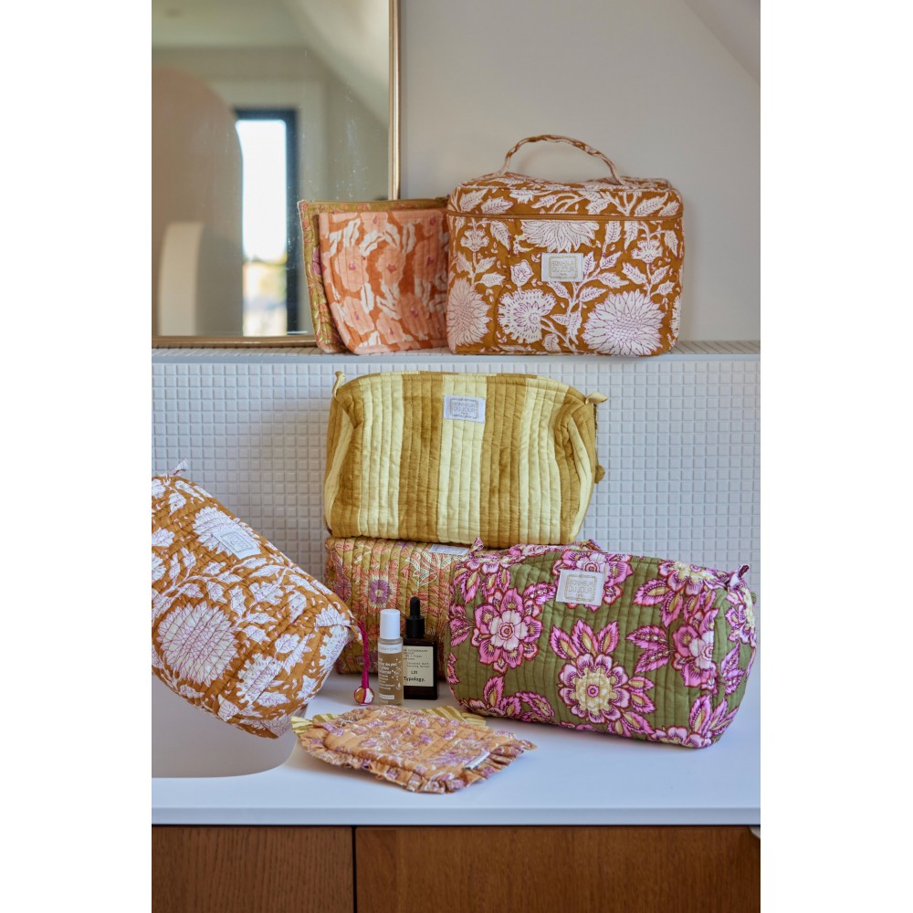 Une trousse de toilette douce, pratique et joliment imprimée, à glisser dans toutes les valises ou à poser sur l’étagère de la salle de bain.